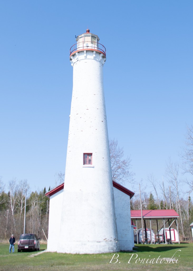 Rogers City – The Forty Mile Point Light. This is a cool spot with a lot to see. The light is open to the public during the summer months and there is even a ship wreck you can walk to on the beach that appeared when the water got really high.