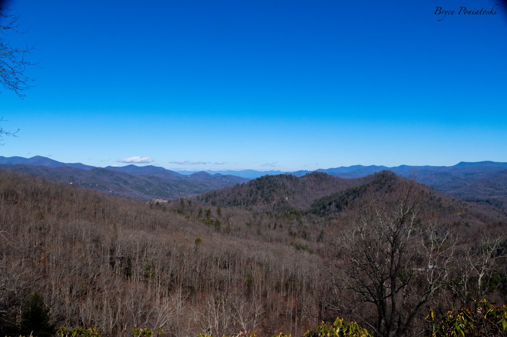 We hiked 2 trails while we were here. The First was the Spring House Trail to the Adi-Hi Falls Trail. This is a nice short hike lots of steps especially the Adi-Hi Falls section. This Takes you down to a viewing platform a little over half way down the falls. This is the only falls hiking trail in the park that I know of. The Falls are definitely worth the walk down. After walking back up the stairs and getting to the road. We actually took the road back to the truck and on our way back we came across Cowee Overlook. The overlooks around here are just awesome views for miles.