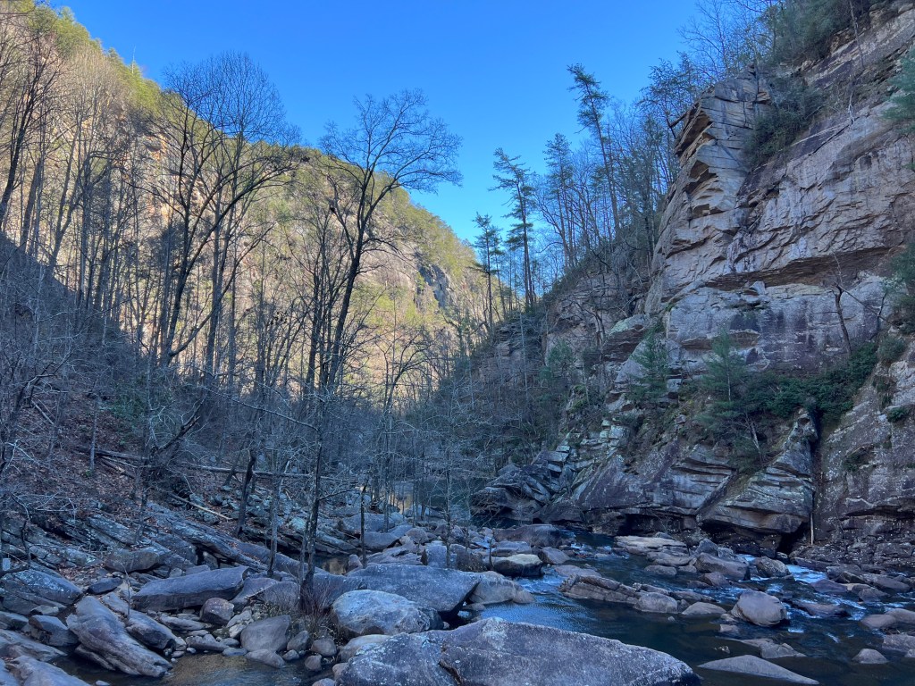 The main one is Stoneplace Trail which takes you down and out of the park into management land so you need a permit from the visitor center which is free to ride it. But this is an awesome ride and if you only want to ride down and have a friend with a 4×4 you can have them meet you at the bottom since there is a management area trail that takes you down the the boat ramp for tugaloo lake. You have to have 4×4 to use this trail, the sign says at the top. And when you get down it you will know why you need it.