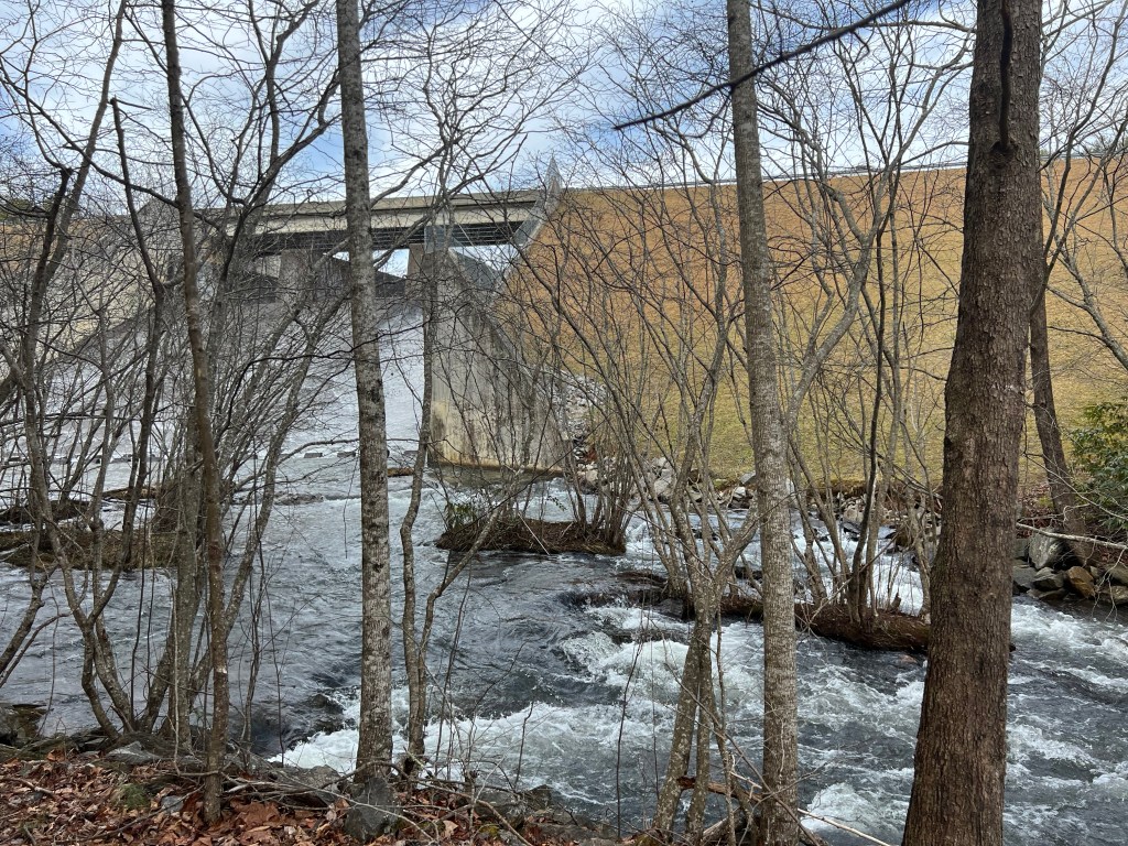 We hiked back to the truck and then down the road by the mountain biking parking area toward the river on the other side and found the dam.