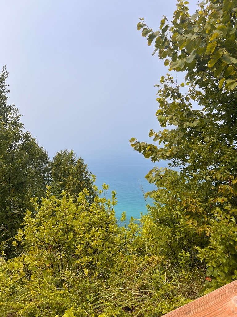 We hiked about a total of 4 miles, it was a warm day, so we enjoyed the shade of the trees. We found the trail easily that takes you out to Old Baldy. Note: that section of the trail is no mountain bikes. It is a nice, very sandy hike out to the edge of Lake Michigan, and they have a sign that says it is a 20 to 30 ft drop to the water. I think that should have been in meters because it looks like it is at least 100 ft down. You don’t want to go down there; you probably will never make it back up.