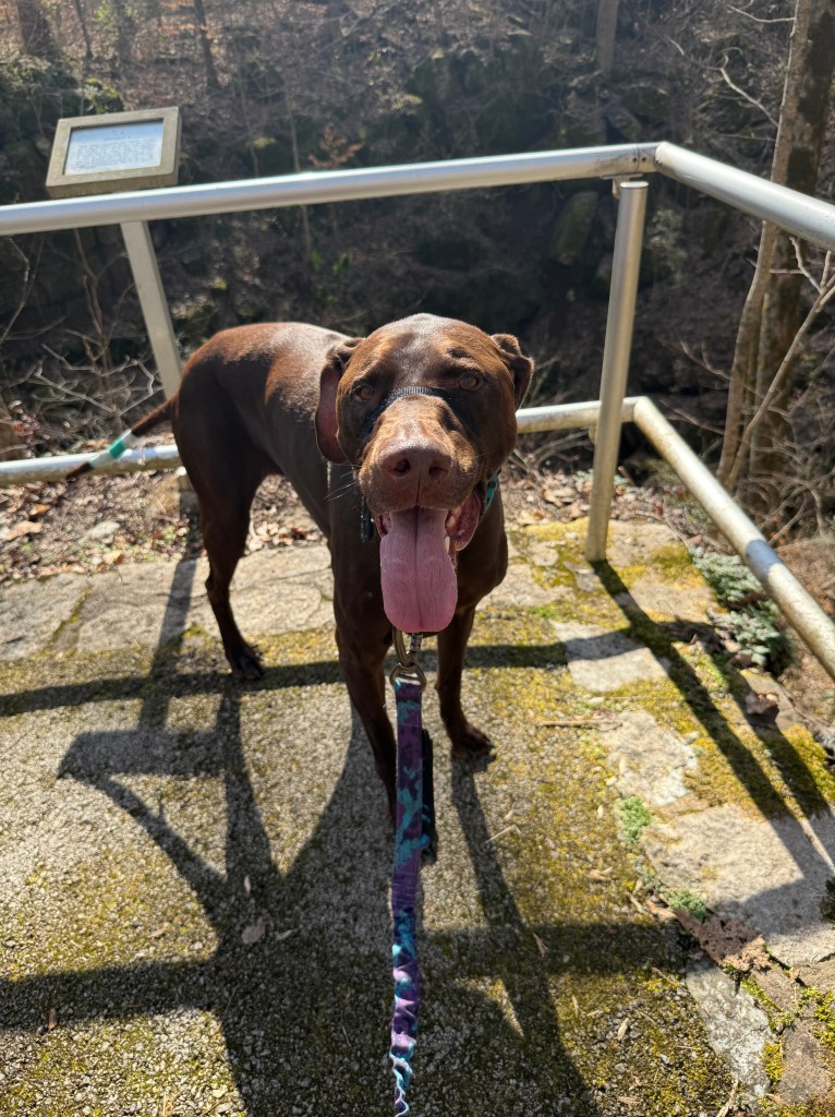 We couldn’t get into the cave the pathway was closed due to need for repair but it was a nice short hike and a wood pathway. There is also a 1.2 mile nature hike up the mountain. I got my stamp and we checked it out.