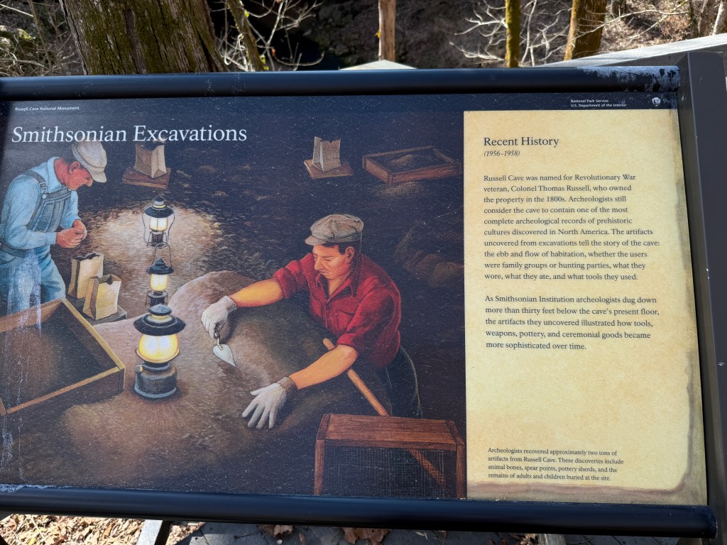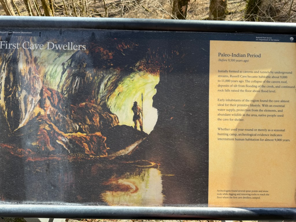 We decided to get out the National Parks book and see what was close. We found Russell Cave National Monument, it is a small park with only a couple of walking trails. But it is full of history.