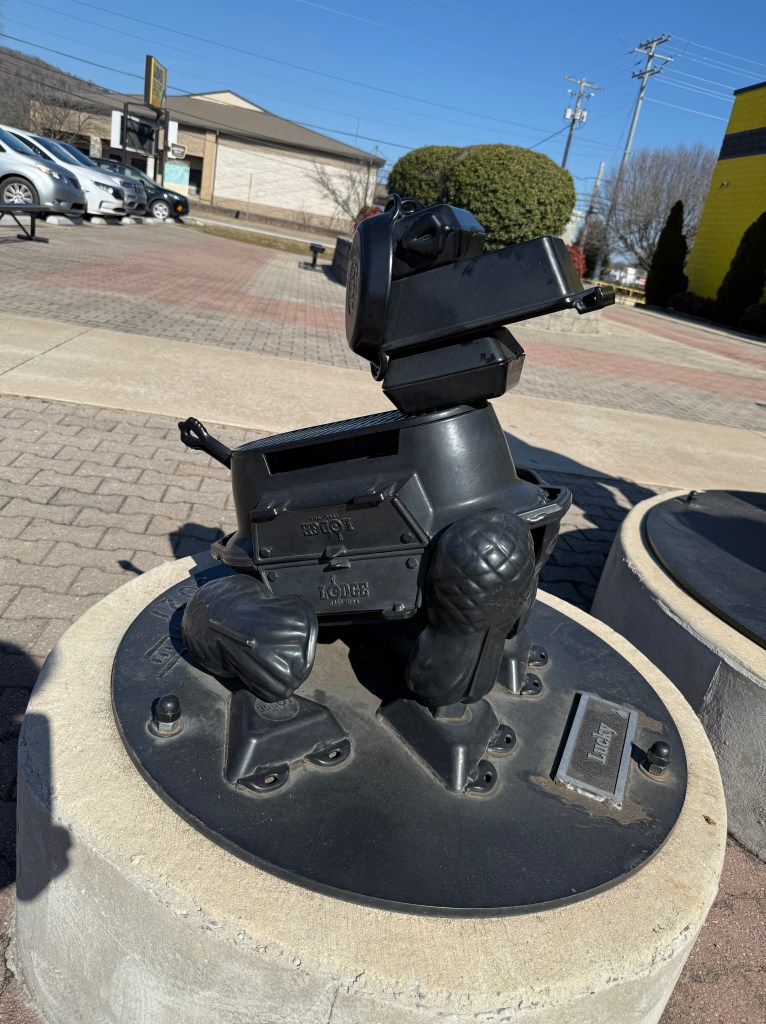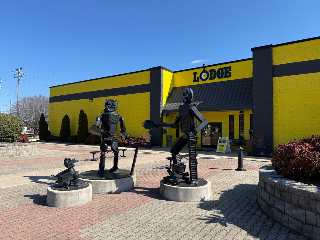 After our Russell Cave NM stop we headed toward South Pittsburgh where we found the Lodge Cast Iron Museum and Outlet Store. It was a fun stop on our way back to Georgia. We found some cool finds. Including the cool cast iron artwork outside the store.