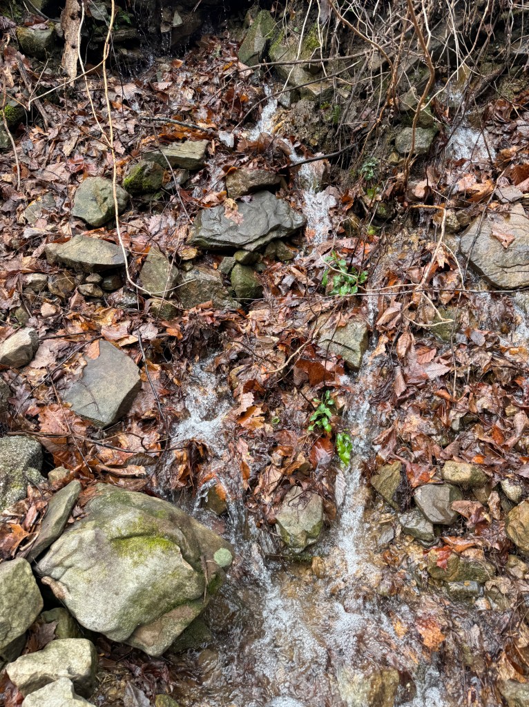 The trail from the bottom on the other hand is a well maintained gravel trail. We headed into the park, you could hear the roar of the creek. The creek doesn’t normally roar so that is a new one. The trails where small streams in places, thankfully we have waterproof hiking boots. They really are a must have down here.